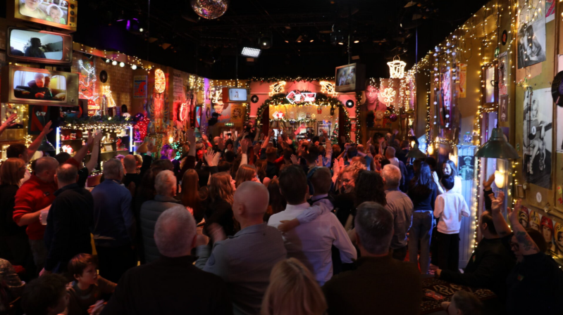 Onze fotograaf ging vrijdagochtend langs in Hilversum: “De sfeer zit er goed in. Enkele minuten voordat ze het café ingaan, worden de bezoekers opgewarmd en zijn ze er helemaal klaar voor. In het café staat niemand stil en is er veel interactie met de dj en het publiek. Mooi om te zien, en begrijpelijk dat ook deze editie succesvol is!”