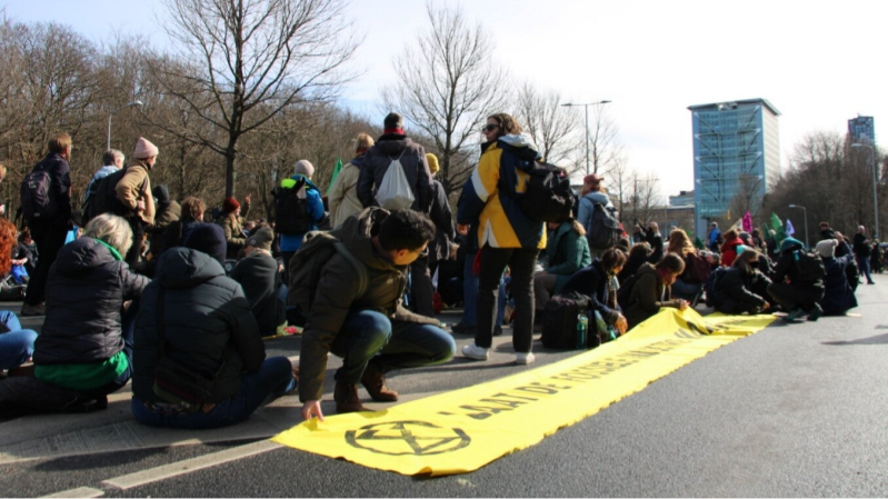 Beeld: NL nieuws - Op 11 maart dit jaar blokkeerde XR ook de A12