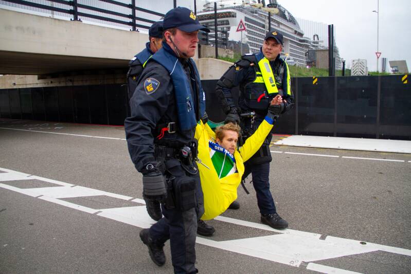 De activisten hopen het cruiseschip MSC Virtuosa tegen te houden. Extinction Rebellion (XR) heeft de afgelopen tijd vaker in de Noord-Hollandse plaats actiegevoerd tegen de schadelijke impact van cruiseschepen op het klimaat.