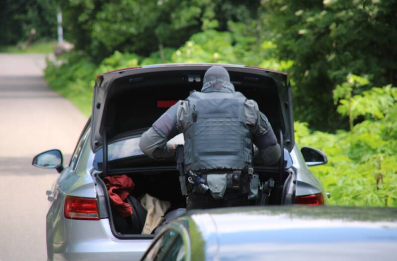 De inval gebeurde in de Speelmanstraat in het kader van een onderzoek naar de dood van een man die vorige week werd gevonden in een kelderbox aan de Clauskindereweg in Amsterdam. Een van de twee verdachten is ook een verdachte in het Amsterdamse onderzoek.