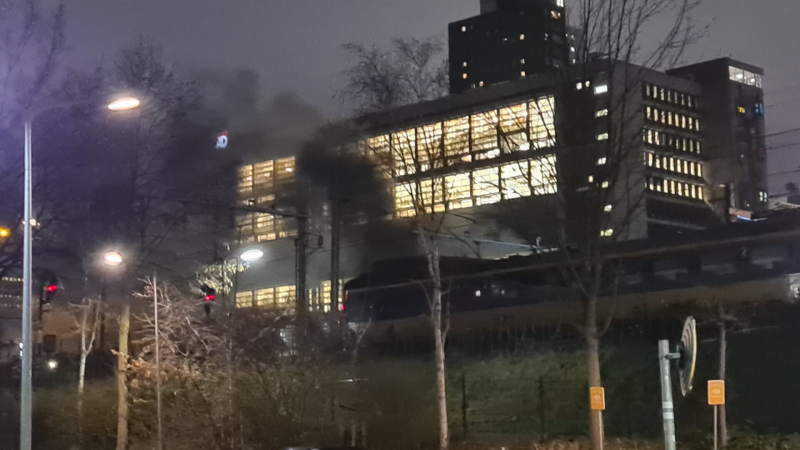 In een schoonmaak hok onder het treinspoor van Rotterdam Centraal woedde woensdagavond een brand. Rond acht uur as de brand onder controle. Huldienste rukte massaal uit naar het station.