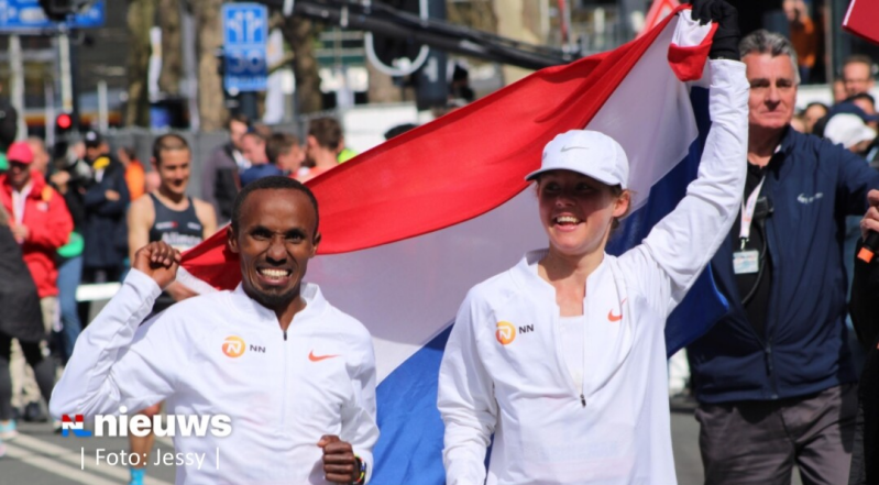 Nageeye, vorig jaar goed voor olympisch zilver in Peking, kwam na 42,195 kilometer als eerste over de finish op de Coolsingel in 2.04.56. Hij dook daarmee ruim onder de 2.06.17 die hij drie jaar geleden in Rotterdam liep.